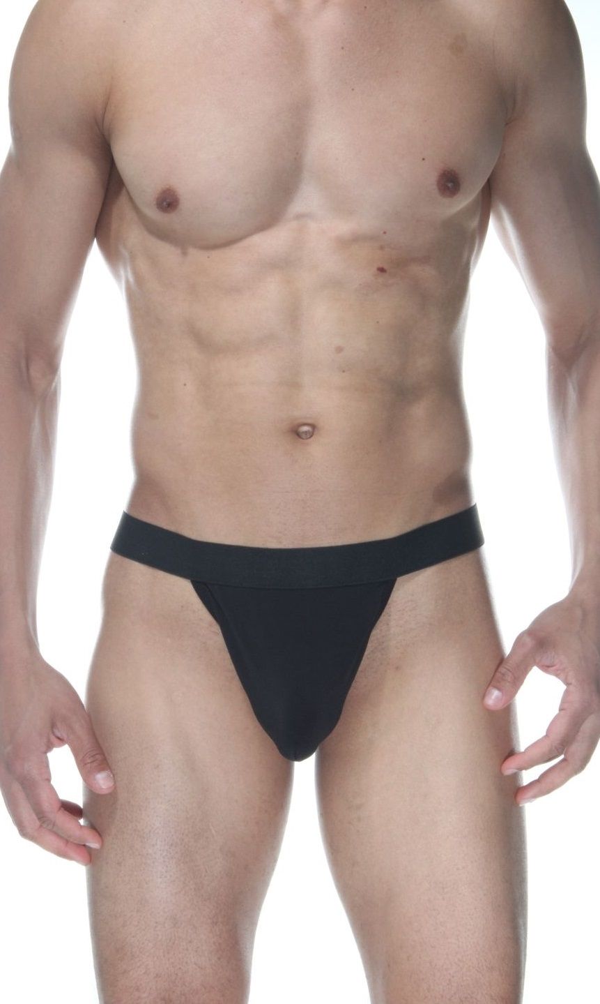 Черные мужские трусы-стринги на широкой резинке Don Moris.