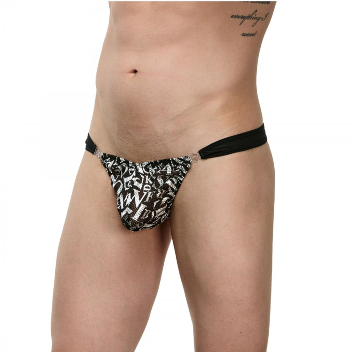 Мужские трусы-тонги с принтом в виде букв.