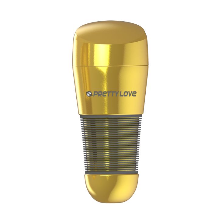Мега-мастурбатор Kitty без вибрации, в золотистой колбе. Удобная туба с крышечкой.