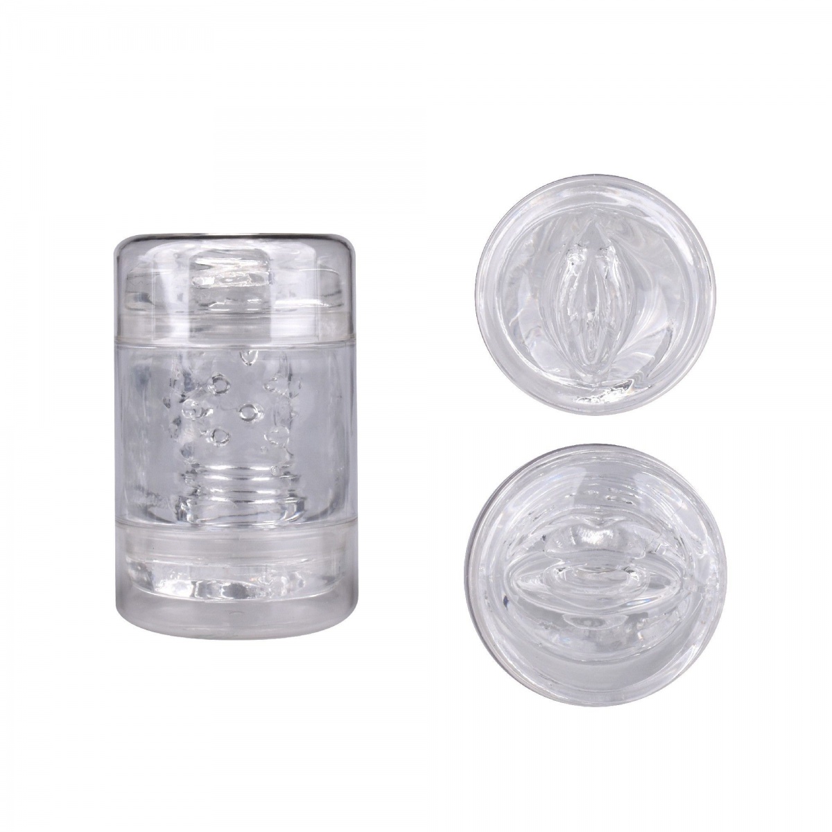Прозрачный двусторонний мастурбатор Joy Cup - вагина и рот. Очень эластичный, компактный по размеру, легкий в очистке.