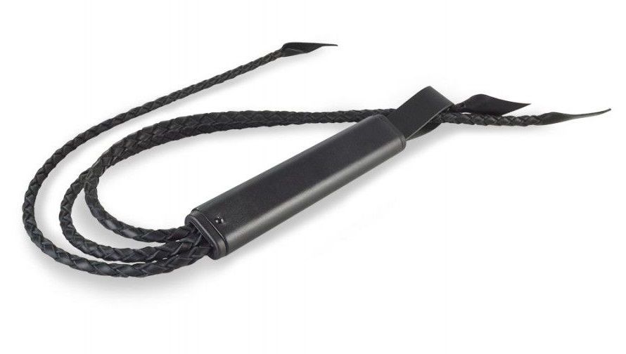 Плеть изготовлена из натуральной кожи. Имеет 3 плетеных хвоста и плоскоовальную рукоять
