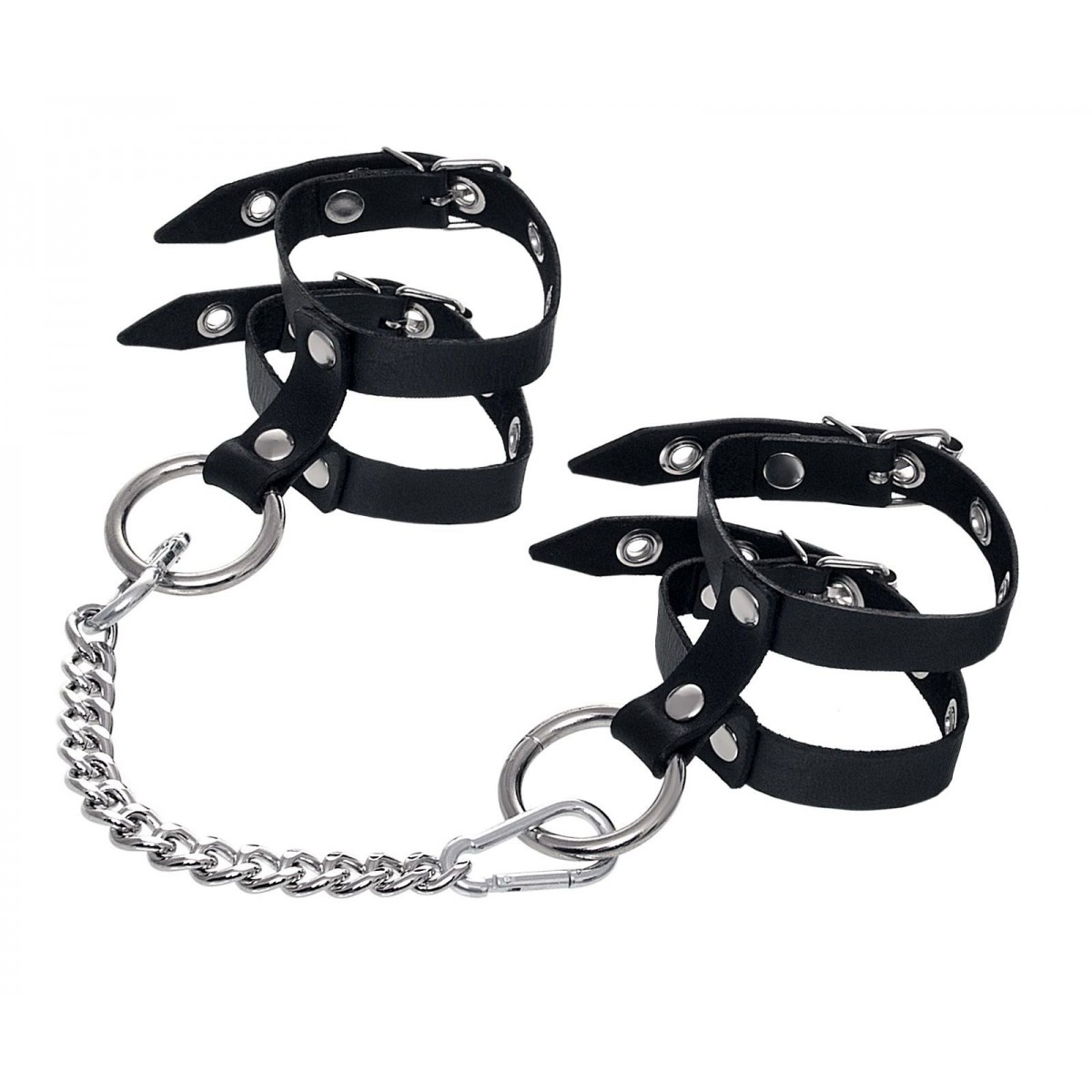Эти однослойные кожаные оковы из двух ремешков могут стать стильным аксессуаром, а могут послужить вашим целям по своему прямому назначению. Частичное обездвиживание и невозможность двигать руками или ногами дают вам полную власть над партнером – взрослые игры для взрослых. Наличие двух колец и карабинов, соединенных между собой металлической цепочкой, позволяет использовать изделие как раздельно – аксессуар-манжеты, так и как оковы для фиксации. К широким металлическим кольцам также можно присоединить и другие аксессуары при помощи карабинов. Благодаря универсальному размеру оковы могут использоваться и мужчинами, и женщинами. Размер легко регулируется с помощью металлических пряжек, органично вписывающихся в общий стиль. Длина манжет - 30 см, ширина ремешков - 1,6 см. Длина сцепки - 19 см.