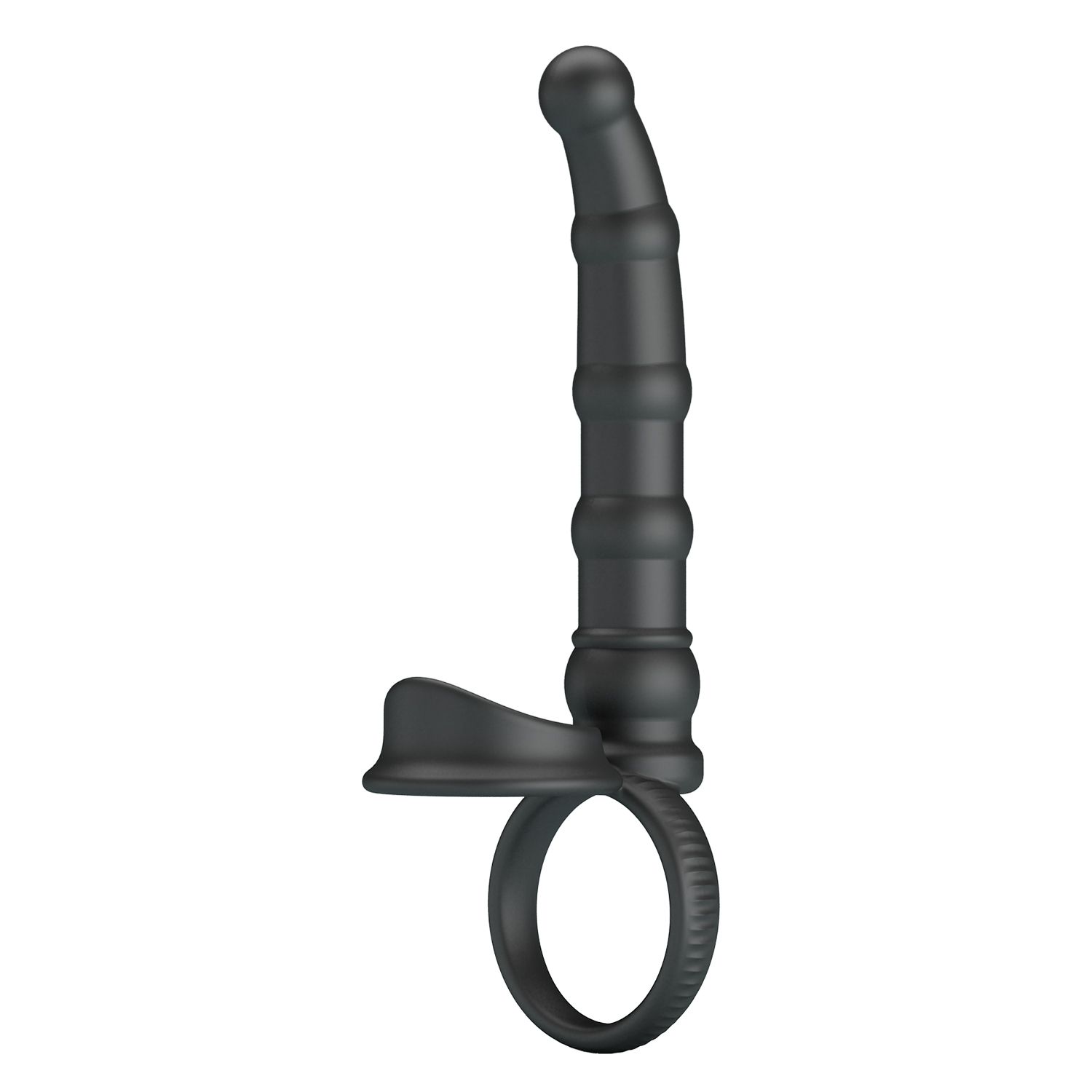 Черная насадка на член для двойного проникновения Tatum с вибрацией. 10 режимов. Легко надевается, продлевает удовольствие, позволяет ласкать партнёршу вагинально и анально одновременно. Рабочая длина - 12,4 см. Минимальный диаметр рабочей части - 1,7 см. Диаметр колец - 3,4 и 4,2 см.