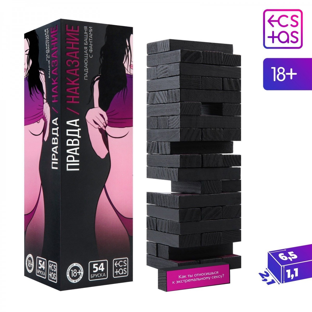 Правда или сексуальное наказание! Хотите провести время вдвоём, да ещё так, чтобы вечер прошёл незабываемо?Постройте башню из брусков. Вытягивайте бруски из разных частей башни и выполняйте задания или отвечайте на вопросы, написанные на брусках. Тот, кто обрушил башню, проиграл! Партнёр придумывает проигравшему сексуальное наказание на своё усмотрение. Внутри вы найдёте: 54 бруска из натурального дерева,наклейки с фантами на бруски. В комплекте: 54 бруска, наклейки с фантами.
