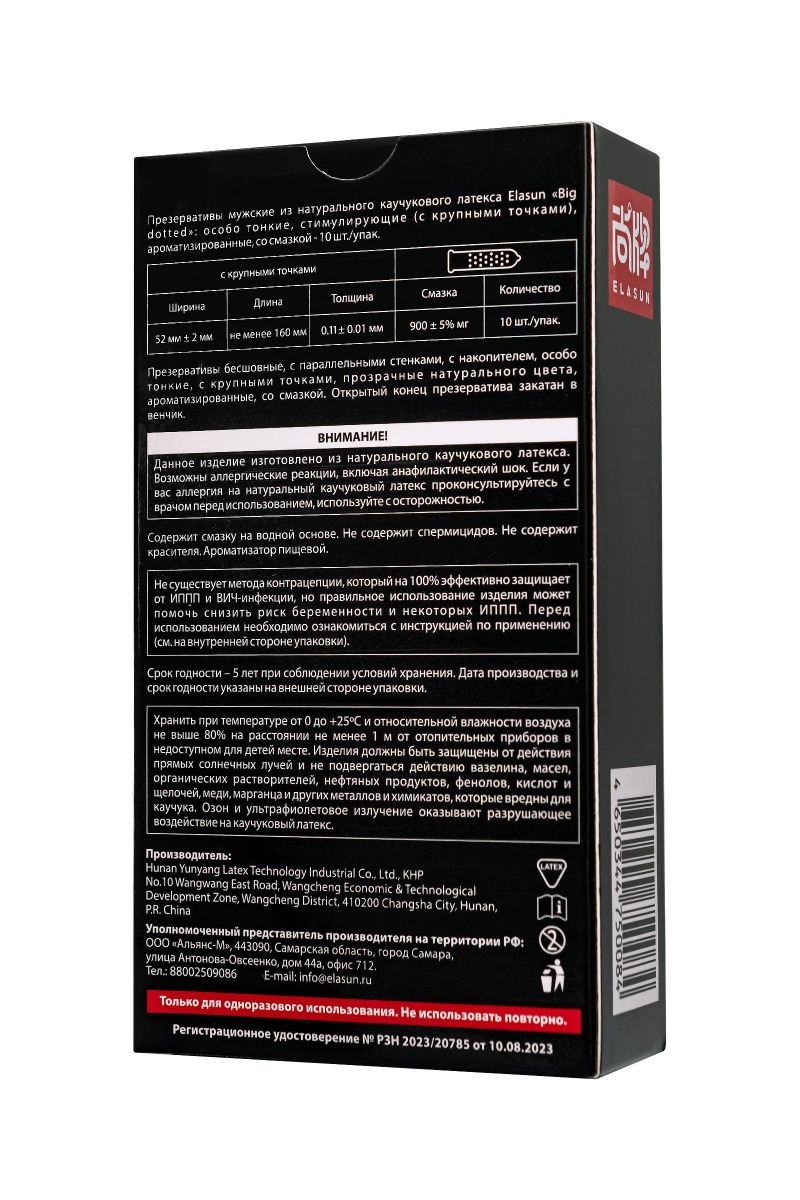 Elasun Big Dotted — это больше, чем просто защита, это ключ к ярким, незабываемым ощущениям. Экстратонкие презервативы из натурального каучукового латекса созданы для тех, кто хочет испытать максимальную близость, сохранив абсолютную надежность. Особая текстура с крупными точками нежно стимулирует самые чувствительные зоны, включая легендарную точку G, даря вам и вашему партнеру взрывные волны наслаждения. Уникальная смазка на основе гиалуроновой кислоты обеспечивает шелковистую гладкость и комфорт, создавая эффект естественности и чувственности в каждом движении. А нежный фруктовый аромат превращает каждый момент в особенный ритуал, добавляя нотку страсти и романтики.