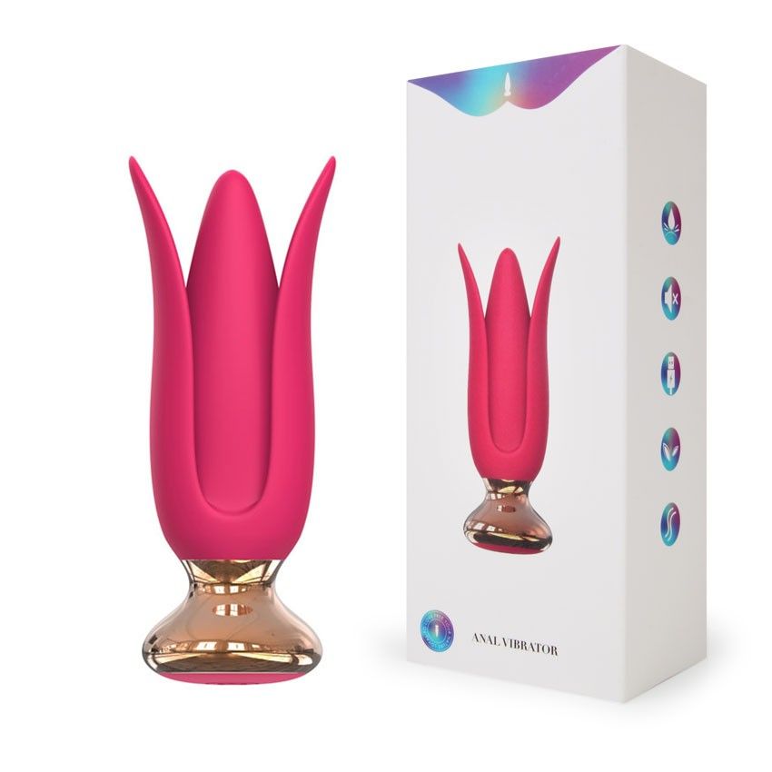 Розовая анальная вибровтулка с лепестками. 10 режимов вибрации. Рабочая длина - 9,5 см.
