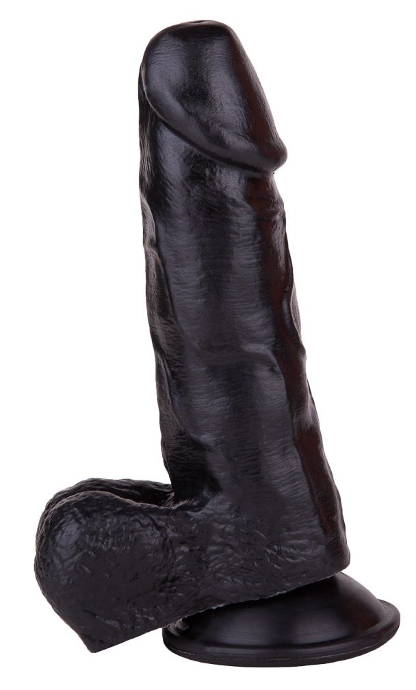 Этот фаллоимитатор чёрного цвета с присоской для крепления на плоскости изготовлен из гипоаллергенного, упругого и бархатистого на ощупь материала. Реалистичные формы и ярко выраженный рельеф из напряжённых вен с лихвой компенсируют не самые большие размеры секс-игрушки. Крупная головка приглашает в мир чувственных проникновений, а податливый ствол с пышной мошонкой – на сеанс незабываемого вагинального массажа!