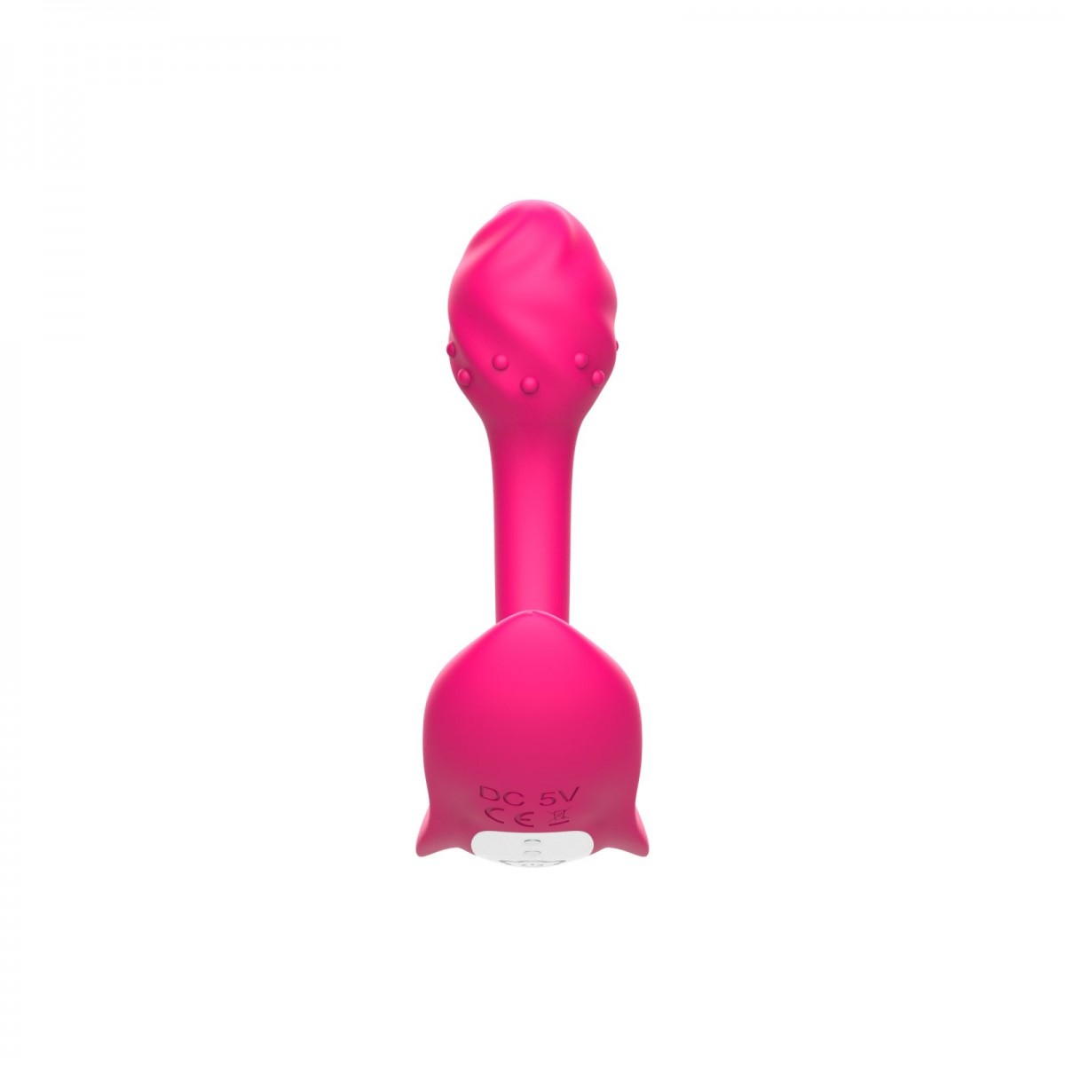 Розовый многофункциональный стимулятор для женщин. Имеет форму лодочки с бугорком посередине и отростком-шишечкой. Может вкладываться в трусики (и при этом отросток вводится в анус), может использоваться для одновременной стимуляции точки G и клитора. Управляется при помощи пульта ДУ, 7 режимов вибрации.